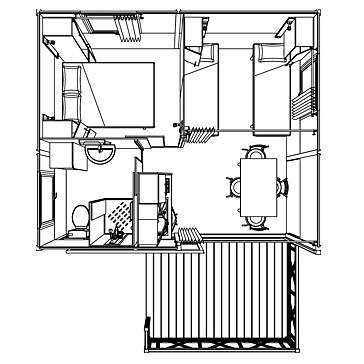 - Integré dans le séjour un canape convertible en un lit de 140 x 190